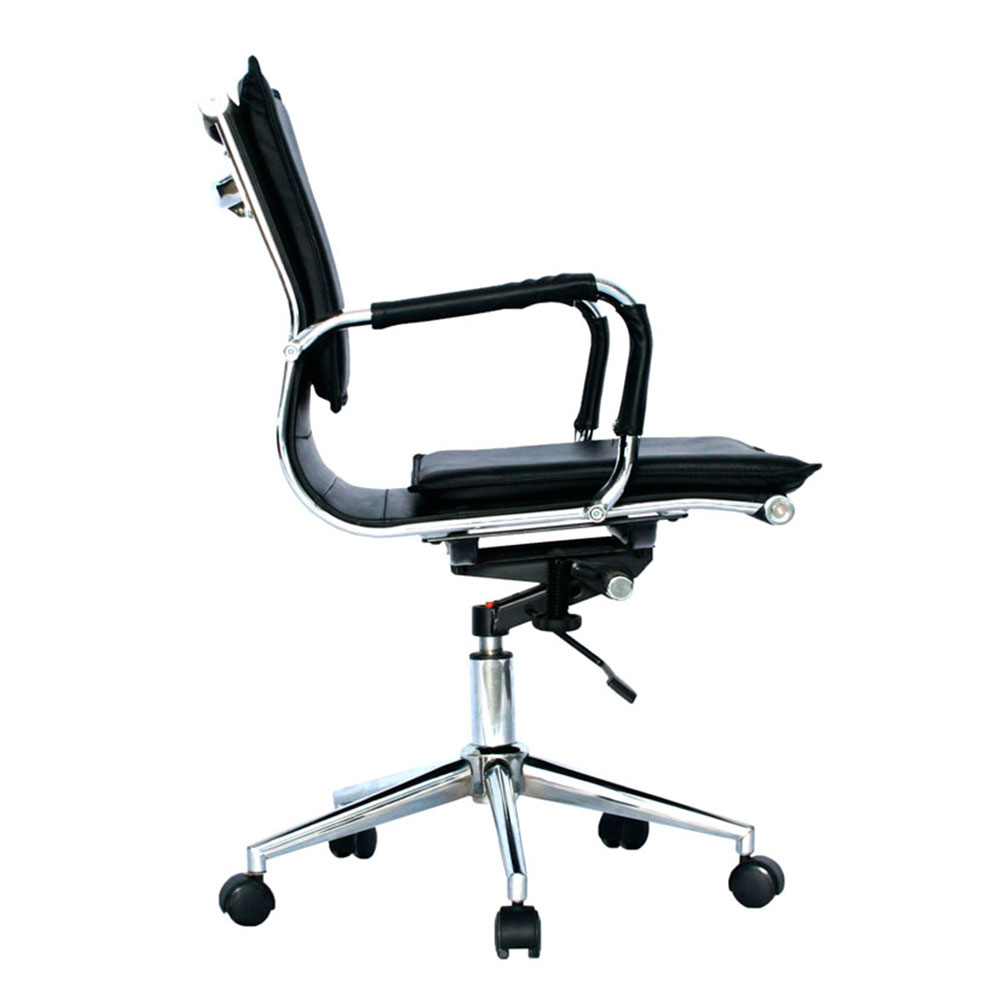 El sistema de elevación neumática permite ajustes precisos y rápidos de altura, adaptándose a cualquier usuario para mantener una postura saludable y prevenir fatiga lumbar. Con mecanismo basculante de 1 bloqueo, esta silla de oficina permite reclinación controlada para momentos de relajación sin perder control ni seguridad. Su estructura metálica con acabado en cromo, junto a brazos cromados fijos, ofrece soporte firme y elegante, mientras el tapizado en cuero sintético negro de alta calidad brinda una sensación lujosa, fácil limpieza y resistencia al desgaste diario. Ideal como silla gerente negra para oficinas modernas, la ALEMANIA fusiona ingeniería avanzada, ergonomía certificada y estética minimalista, convirtiéndose en la opción preferida para líderes que exigen máximo rendimiento y estilo en su mobiliario de oficina.