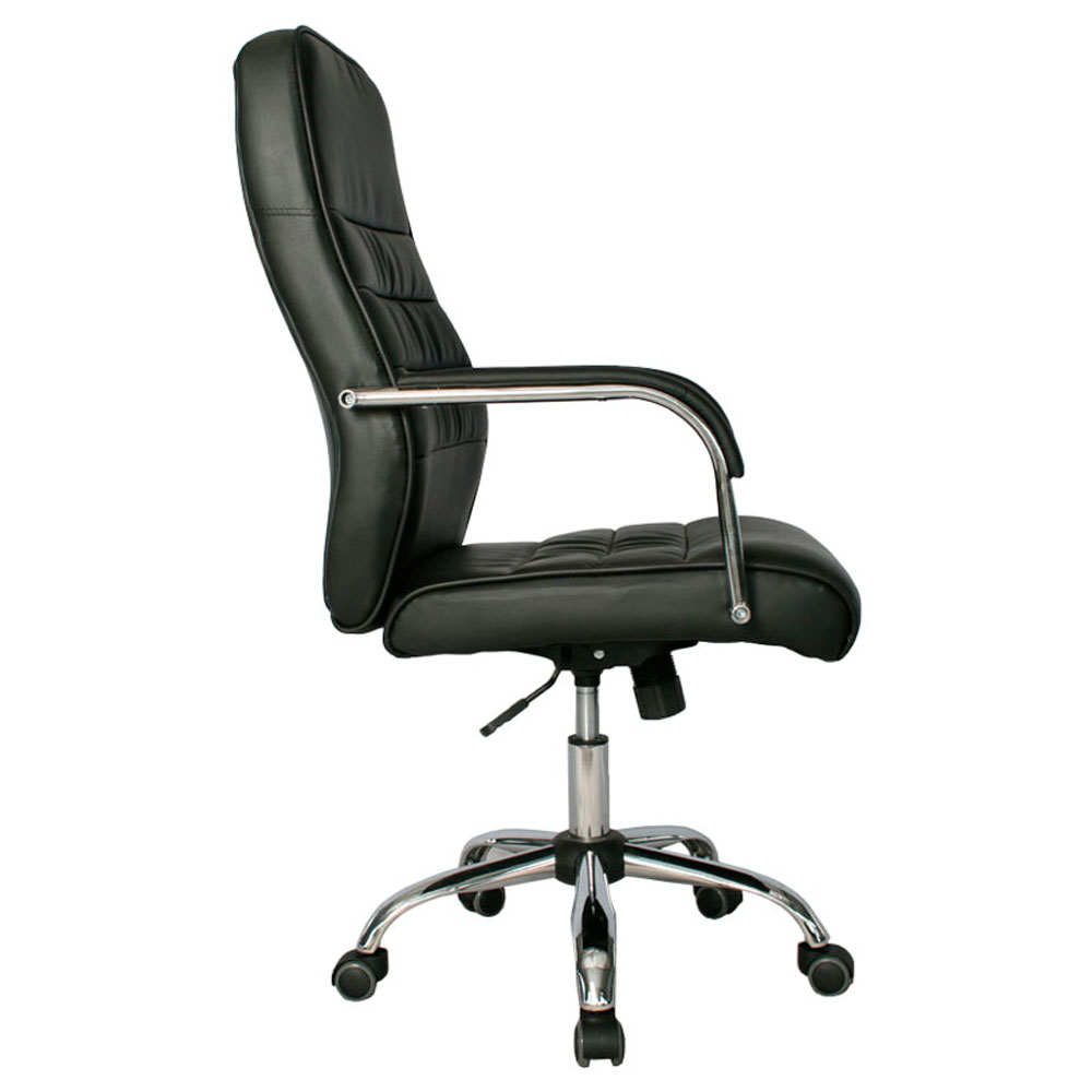 El mecanismo basculante con 1 bloqueo ofrece una reclinación segura y controlada para momentos de pausa, manteniendo el equilibrio en todo momento. Los brazos cromados fijos brindan soporte firme y elegante a codos y antebrazos, con diseño ergonómico que reduce fatiga en hombros. Tanto el espaldar fijo como el asiento están tapizados en cuero sintético negro de alta calidad, con textura suave, resistencia a manchas y fácil limpieza, simulando el lujo del cuero genuino con mayor practicidad y durabilidad diaria. En negro profundo con detalles cromados, la NEPAL es la silla gerente ejecutiva con cuero sintético que combina robustez estructural, mantenimiento sencillo y estética atemporal en una opción confiable para entornos corporativos de alto nivel.