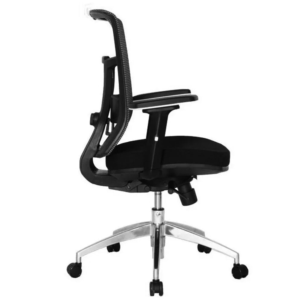 La Silla OSAKA Gerente para Oficina destaca por su ergonomía avanzada y su combinación de acabados premium, perfecta para ejecutivos que buscan sillas gerenciales con base ancha, soporte lumbar activo y transpirabilidad en jornadas intensas. Sus rodachinas fabricadas en nylon ruedan con suavidad y silencio sobre cualquier superficie, garantizando movilidad sin esfuerzo ni marcas. La base de 5 puntas en aluminio de 70 cm ofrece estabilidad excepcional y distribución óptima del peso, con un diseño elegante que proyecta autoridad en el despacho. Gracias al cilindro neumático en acero negro, ajustas la altura del asiento mediante elevación de gas de forma precisa y segura, logrando alineación ideal entre caderas, rodillas y escritorio. Su mecanismo basculante con 4 bloqueos permite fijar múltiples posiciones de inclinación, adaptándose a diferentes tareas con reclinación controlada y confortable.