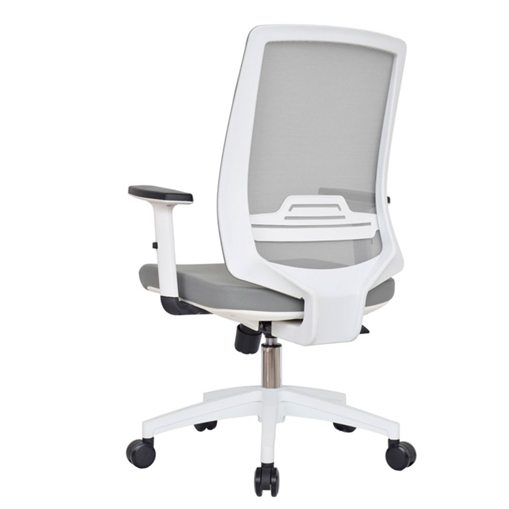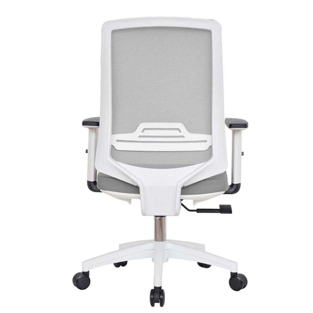 El asiento en cascada inyectado (densidad 60 kg/m³) tapizado en paño gris, con estructura plástica y opción de slider de 6 cm, se adapta a diferentes longitudes de muslo, evitando presión en las piernas y ofreciendo soporte firme sin hundimientos. El espaldar alto forrado en malla nylon gris asegura ventilación constante a lo largo de toda la espalda, disipando calor y humedad para mantener frescura en jornadas extensas. La estructura en polipropileno regulable en altura 7,5 cm, con opción de brazos 3D (altura, profundidad 5,5 cm y ángulo), brinda soporte personalizado a antebrazos en cualquier postura. Con marco blanco y tapizado gris, la THINK MARCO BLANCO es la silla gerente syncro con slider y brazos 3D que une personalización total, transpirabilidad superior y ergonomía avanzada en una solución elegante y funcional para oficinas de liderazgo contemporáneo.