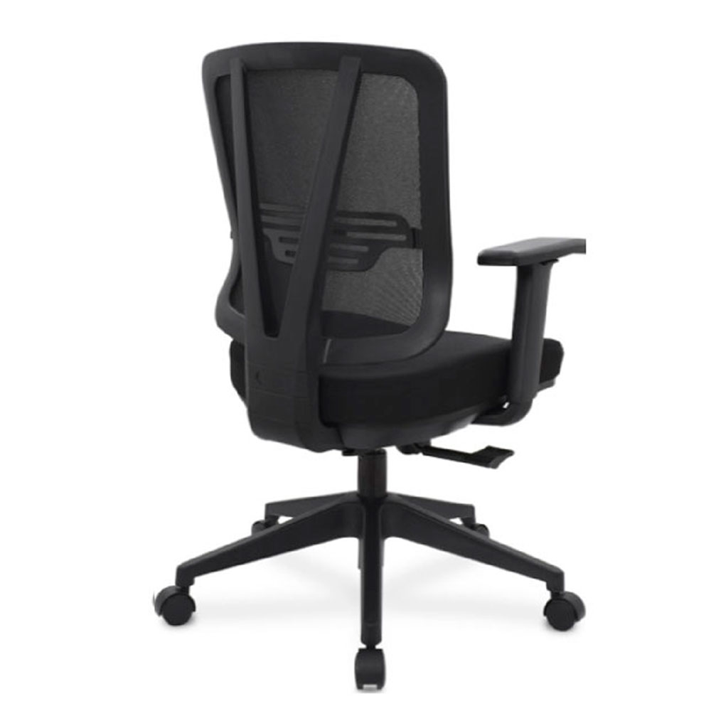 Su mecanismo syncro con una posición de bloqueo sincroniza asiento y respaldo de manera natural, fijando la inclinación ideal para concentración o pausas controladas. El asiento en espuma inyectada tapizado en paño negro brinda acolchado uniforme y resistente que conserva elasticidad tras miles de ciclos. Los brazos regulables en altura con pad en poliuretano dan soporte personalizado a antebrazos, aliviando tensión en hombros y cuello. El apoyo lumbar en polipropileno inyectado ajustable en altura se posiciona exactamente en la zona L4-L5 para distribuir presión y promover curvatura saludable. El espaldar con marco perimetral en polipropileno tapizado en malla negra genera ventilación constante en la espalda, disipando calor y humedad durante horas de sentado. En negro integral con cumplimiento BIFMA, la ZEUS es la silla gerente syncro con lumbar ajustable y malla que une certificación de calidad, frescura selectiva y ergonomía cotidiana en una opción robusta para oficinas productivas y profesionales.