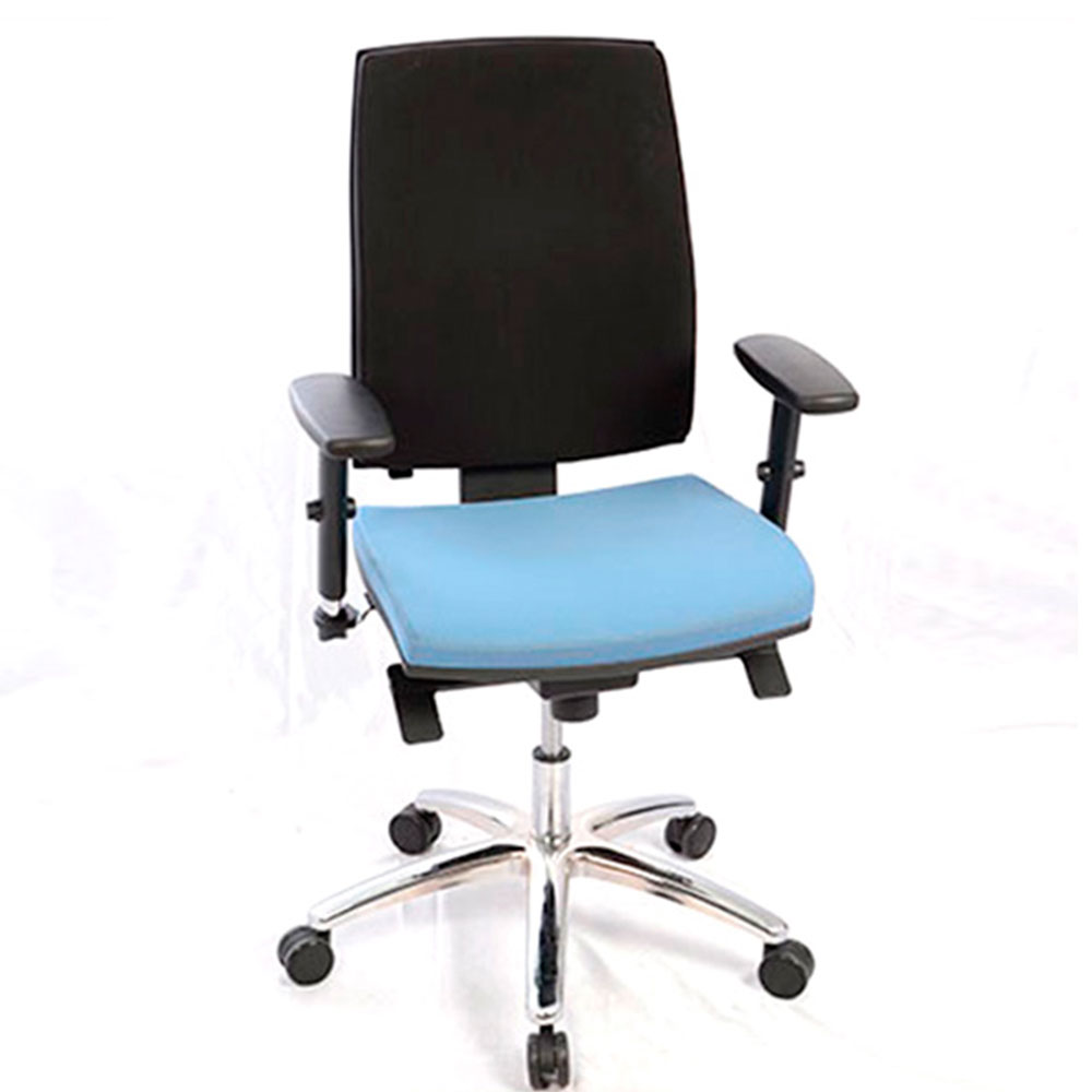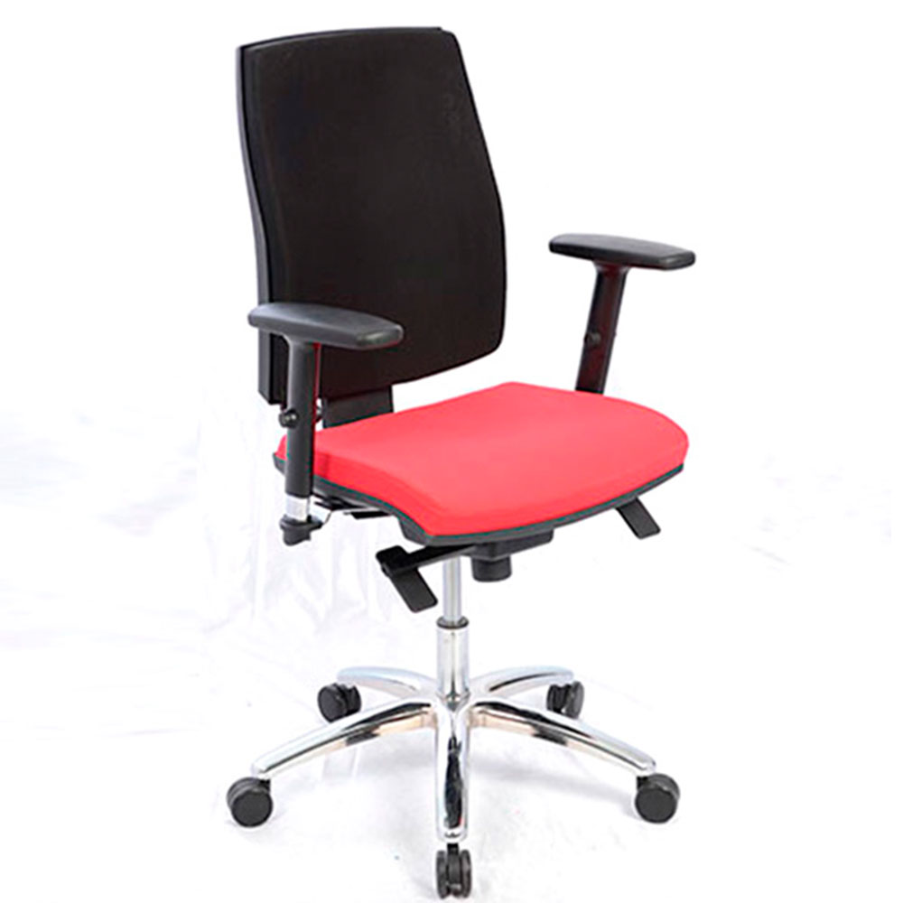 La Silla JOB Operativa para Oficina entrega sincronización avanzada con mecanismo basculante syncro de 4 bloqueos y espaldar alto o medio, ideal para quienes necesitan confort dinámico y soporte completo en tareas prolongadas. Su sistema de elevación neumática ajusta la altura al instante, mientras la base de 5 aspas en nylon inyectado o cromo garantiza estabilidad y presencia profesional. Asiento y espaldar tapizados con espuma inyectada densidad 60 en tela ofrecen acolchado firme y duradero. Las ruedas 100% nylon de alta resistencia con doble pista de 50 mm permiten movilidad silenciosa y sin marcas. Disponible con brazos fijos o graduables y asiento en negro, azul, vinotinto, verde o naranja, la JOB combina ergonomía de alto nivel con un toque de color vibrante en cualquier estación operativa.