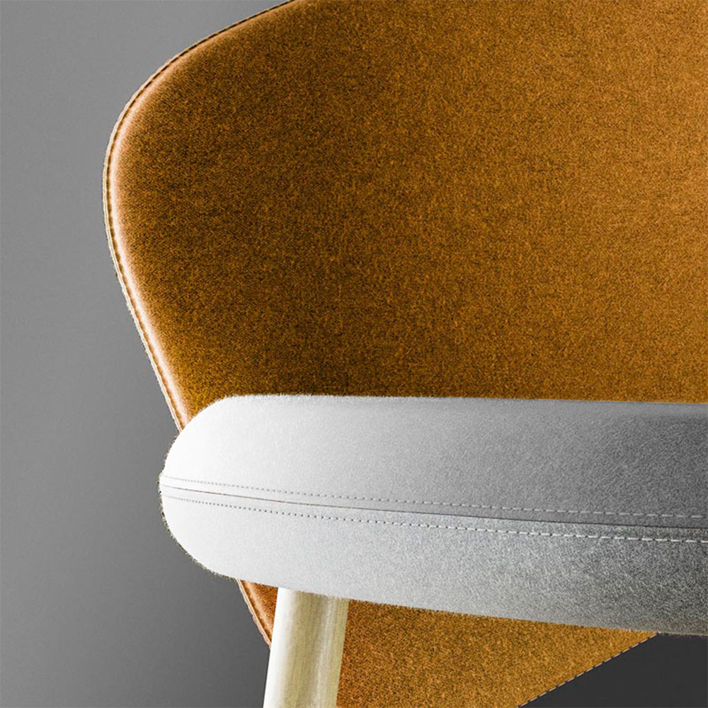 El respaldo de MUSA revela aún más impresionantes detalles en su interior, donde se encuentra un refuerzo de tubo redondo de acero de 1/2" con un calibre 16, asegurando una resistencia excepcional y una durabilidad duradera. El asiento de la poltrona también ha sido meticulosamente diseñado, con espuma inyectada sobre una base de aglomerado de 1,5 cm de espesor que proporciona firmeza y estabilidad.