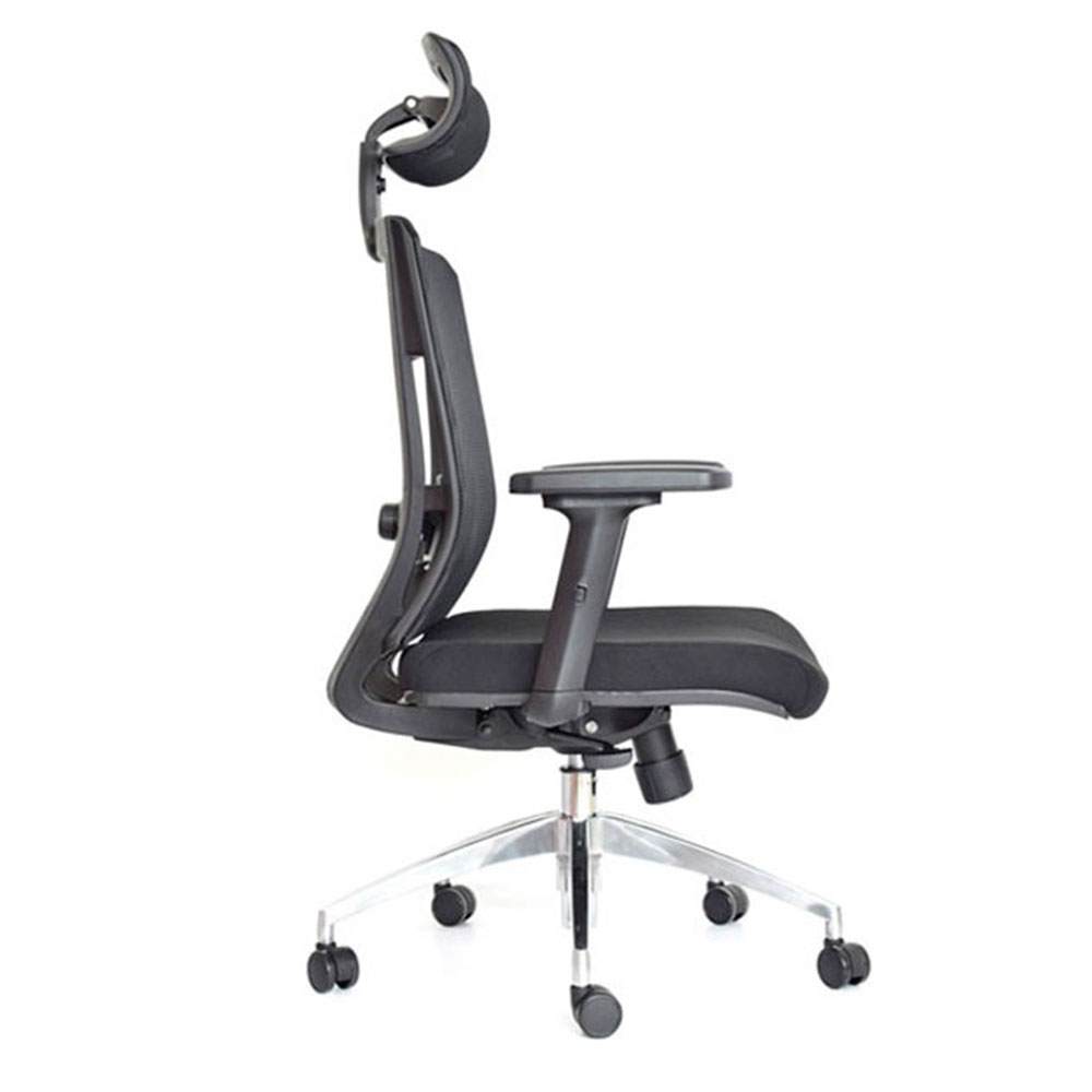 El asiento tapizado en tela negra de alta durabilidad con espuma ergonómica se combina con un espaldar en malla antitranspirante de alta resistencia que mantiene frescura durante horas intensas. Destaca por sus brazos 3D graduables en altura, giro y deslizamiento para personalización total, posicionando a la DELPHI Presidente como la silla de oficina presidencial perfecta para profesionales que buscan sillas ergonómicas con malla transpirable, brazos 3D ajustables, mecanismo multibloqueo y diseño versátil en aluminio o nylon.