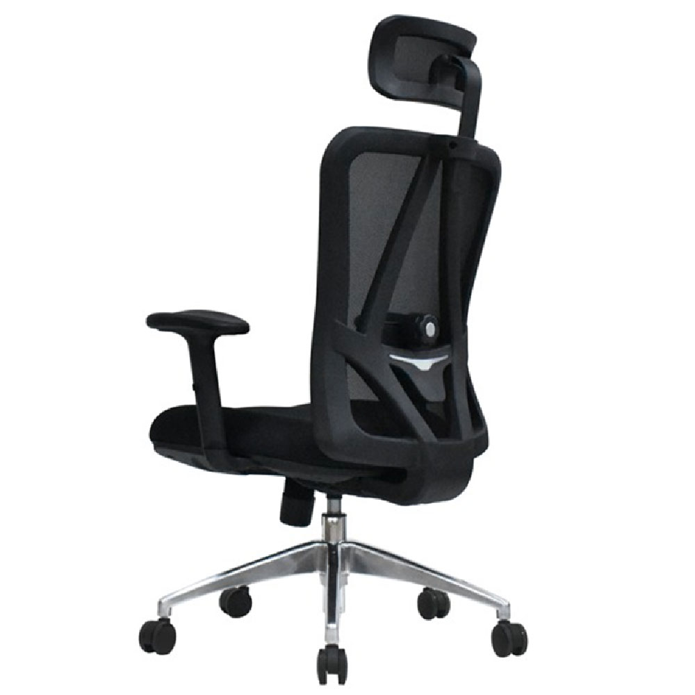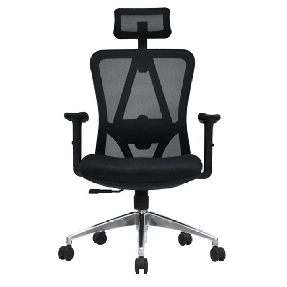 El mecanismo síncrono de 3 bloqueos con perilla de tensión sincroniza asiento en espuma inyectada alta densidad tapizado en paño negro y respaldo en malla con soporte lumbar ajustable en altura. Brazos regulables en altura con PU blando y cabecero en malla ajustable en altura completan esta ventilación ergonómica, posicionando a la LEVI Presidente como la silla presidencial ideal para oficinas que buscan sillas ergonómicas con malla transpirable, síncrono 3 bloqueos, soporte lumbar regulable, brazos PU y frescura constante en aluminio negro premium.