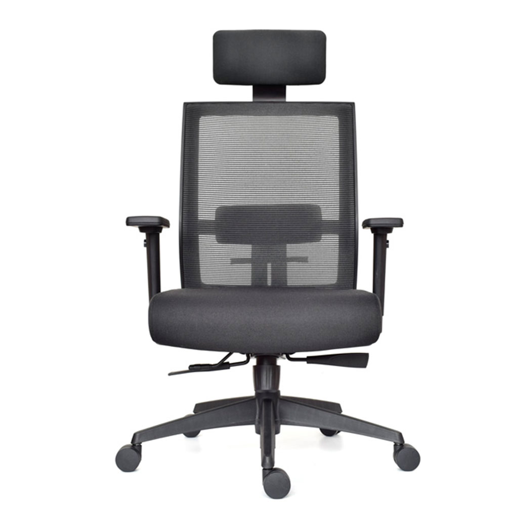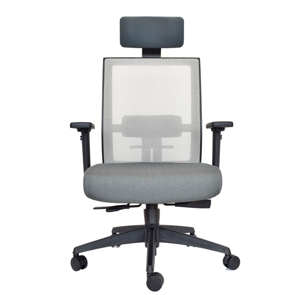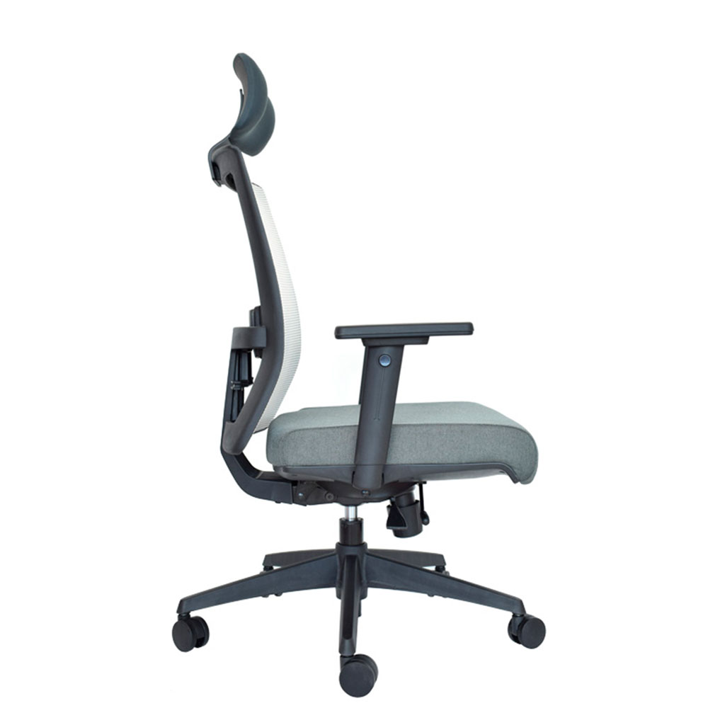 Brazos 3D (altura, giro, profundidad) con pad ergonómico, cabecero y apoyo lumbar regulables garantizan soporte personalizado que reduce fatiga y eleva productividad. Ideal como silla presidencial para oficinas que buscan sillas ergonómicas con syncro 4 bloqueos, malla transpirable, brazos 3D, slider precisión, lumbar/cabecero ajustables y rendimiento sostenido en negro/gris.