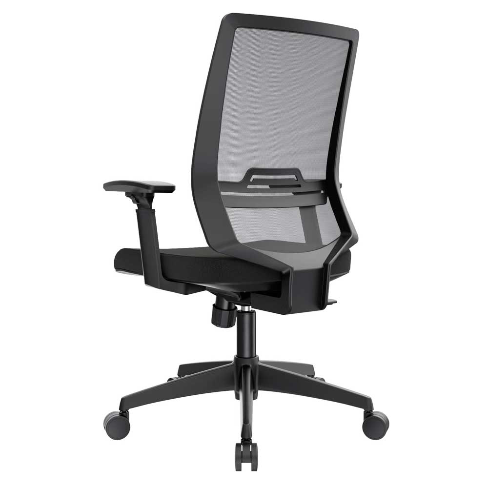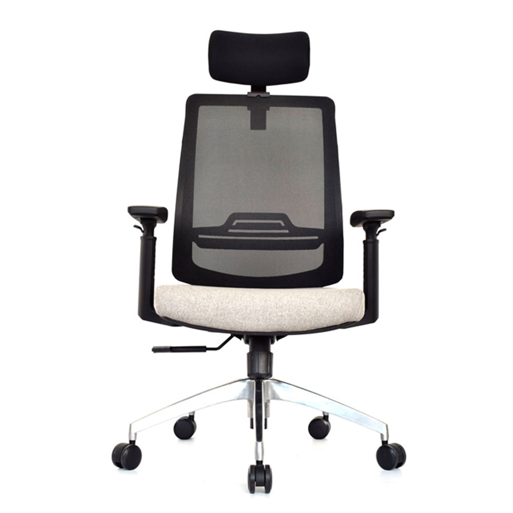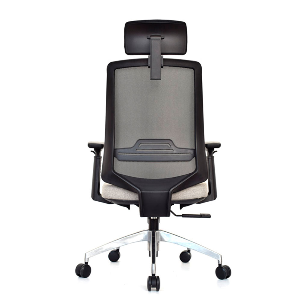 El mecanismo syncro avanzado de 3 bloqueos sincroniza asiento cascada en espuma inyectada densidad 60 kg/m³ tapizado en paño con opción slider 6 cm y espaldar alto en malla nylon transpirable regulable 7,5 cm en altura. Estructura polipropileno con brazos 3D opcionales (altura, profundidad 5,5 cm, ángulo) y cabecero tapizado regulable en altura completan esta armonía postural. Ideal como silla presidencial para oficinas que buscan sillas ergonómicas con syncro 3 bloqueos, malla regulable, slider precisión, brazos 3D y bases versátiles para distinción y salud en negro/gris.