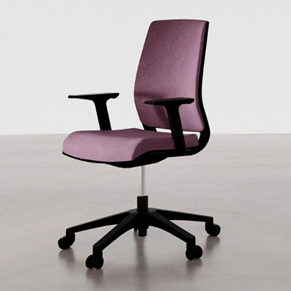 El asiento tipo ejecutivo Essentia en polipropileno reforzado con acabado texturizado está tapizado con espuma inyectada de alta densidad (60), disponible en variedad de materiales y colores. A diferencia de la versión en malla, esta silla cuenta con espaldar completamente tapizado, proporcionando mayor sensación de confort y uniformidad estética, también personalizable en material y color.