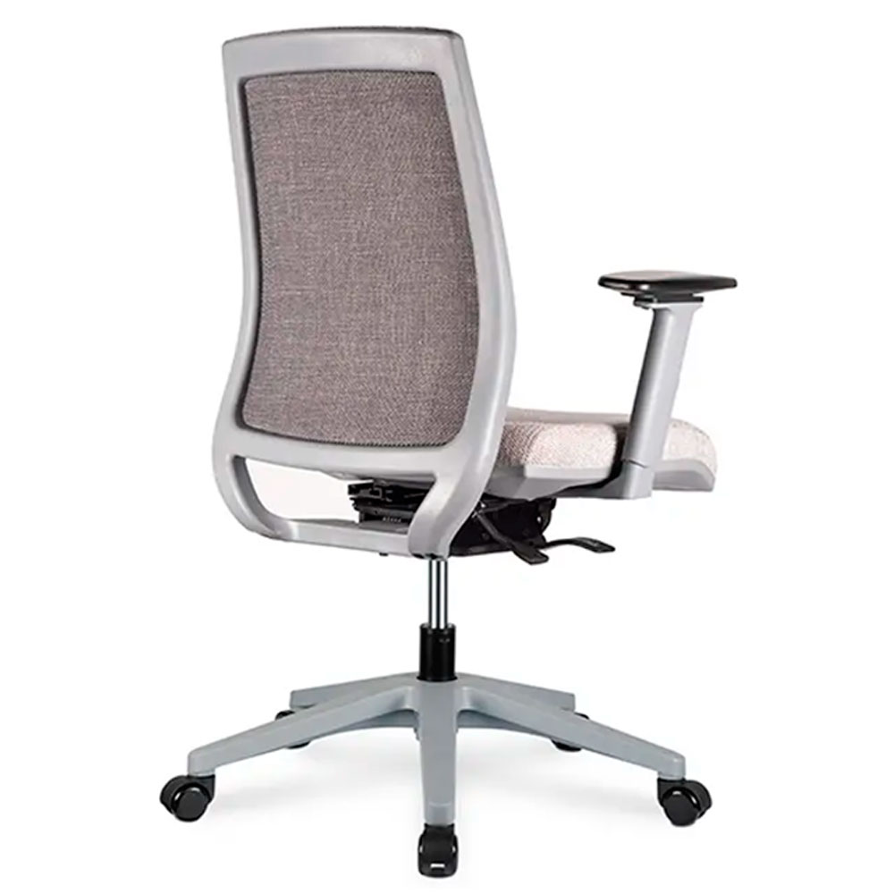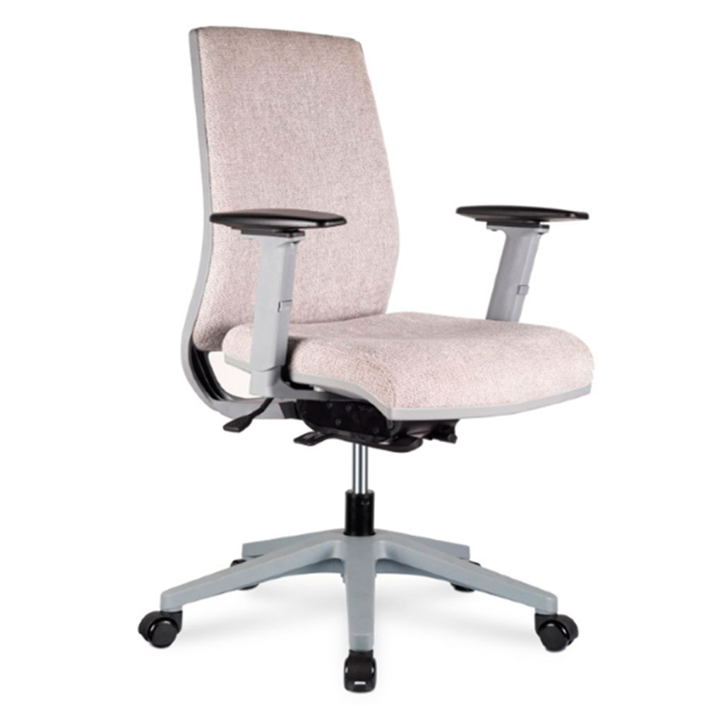 Incluye brazos ajustables en altura con pad en poliuretano, con opción de configuración 3D para mayor adaptabilidad, y cabecero regulable en altura que mejora el soporte cervical en jornadas prolongadas.