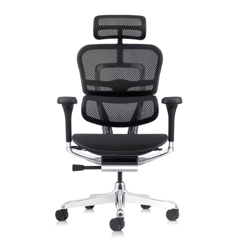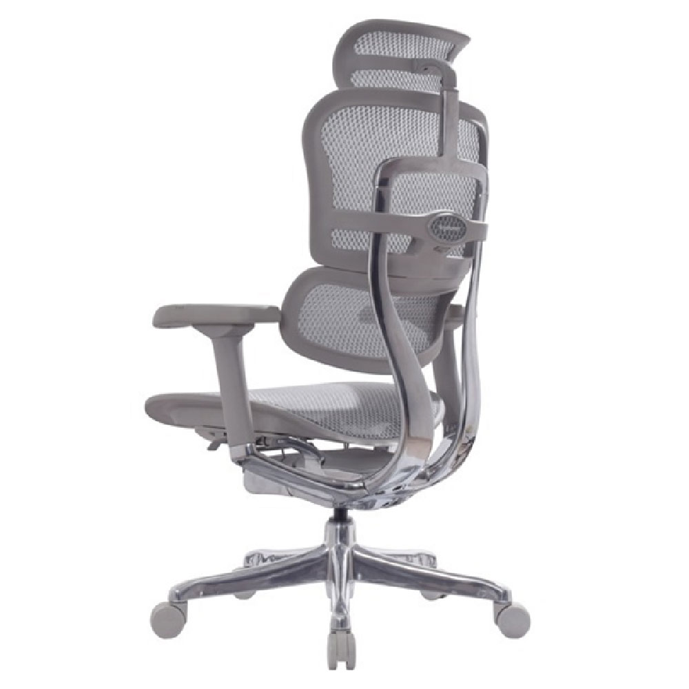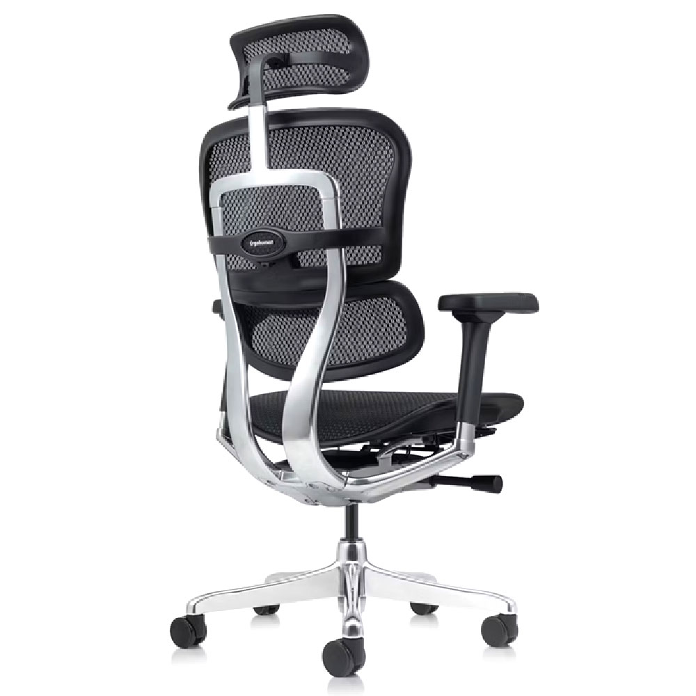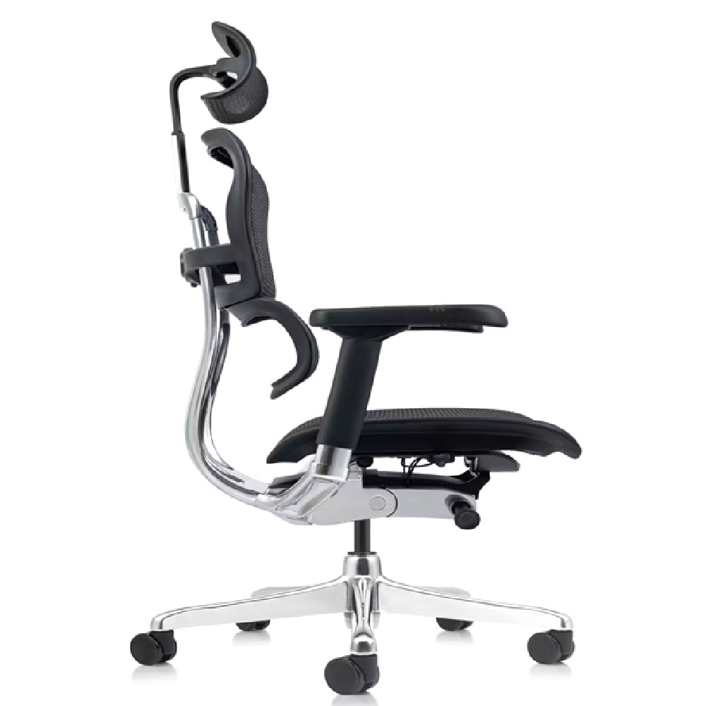 Base de aluminio pulido de 70 cm con ruedas de goma 60 mm silenciosas; brazos 5D en aluminio con PU blando (22 alturas, 10 profundidades, 4 rotaciones, 3 aperturas, 3 elevaciones de pad) y cabecero en malla ajustable en altura y ángulo. Esta silla presidencial elite convierte la ERGOMETH ELITE en la opción definitiva para oficinas que exigen sillas ergonómicas con mecanismo síncrono 4 bloqueos, brazos 5D, slider precisión, malla tensada y aluminio premium en colores negro/gris.