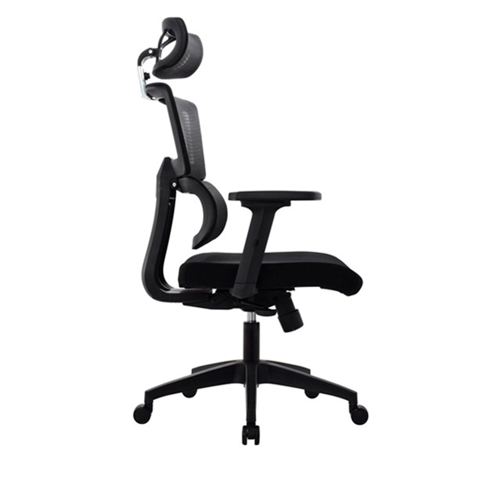 Cilindro neumático de acero negro con elevación a gas para altura perfecta; mecanismo syncro de 4 bloqueos o basculante que libera movimiento fluido cuando no está fijo. Asiento en espuma densidad 30 tapizado en tela negra premium; espaldar en malla microperforada de alta resistencia con cabecero ajustable en altura y basculante. Brazos 3D (altura, giro, deslizamiento) y apoyo lumbar inteligente completan esta obra maestra, posicionando a la FLIP Presidente como la silla presidencial definitiva para usuarios exigentes que buscan sillas ergonómicas con syncro 4 bloqueos, brazos 3D, malla microperforada, cabecero multifunción y opciones de base premium.