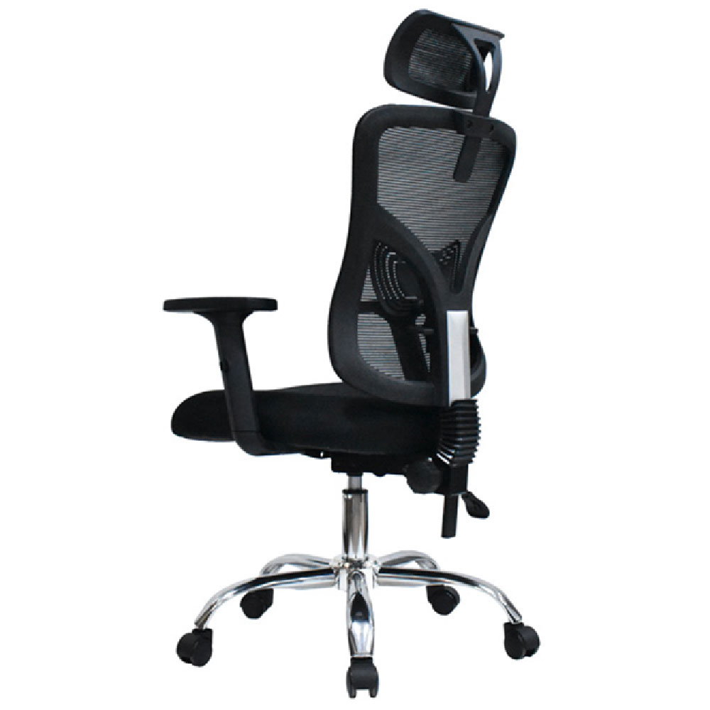 El espaldar en malla graduable en altura cuenta con un apoyo lumbar plástico graduable en altura, mientras que el asiento está equipado con espuma laminada y tapizado en tela de color negro para un confort excepcional durante largas jornadas de trabajo. Finalmente, el cabecero en malla graduable en altura completa esta silla ergonómica y funcional, asegurando una experiencia de trabajo cómoda y productiva para cada usuario.