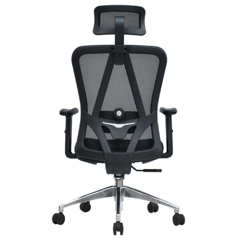 El mecanismo síncrono de 3 bloqueos con perilla de tensión sincroniza asiento en espuma inyectada alta densidad tapizado en paño negro y respaldo en malla con soporte lumbar ajustable en altura. Brazos regulables en altura con PU blando y cabecero en malla ajustable en altura completan esta ventilación ergonómica, posicionando a la LEVI Presidente como la silla presidencial ideal para oficinas que buscan sillas ergonómicas con malla transpirable, síncrono 3 bloqueos, soporte lumbar regulable, brazos PU y frescura constante en aluminio negro premium.