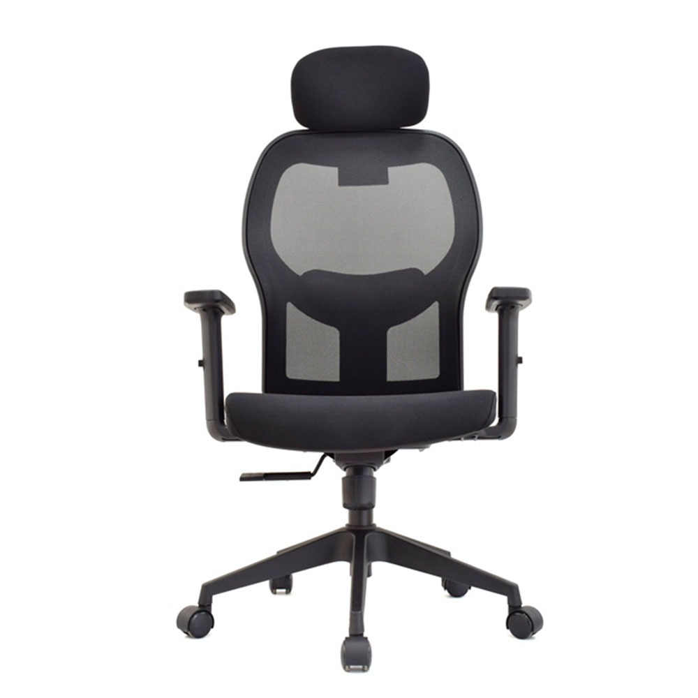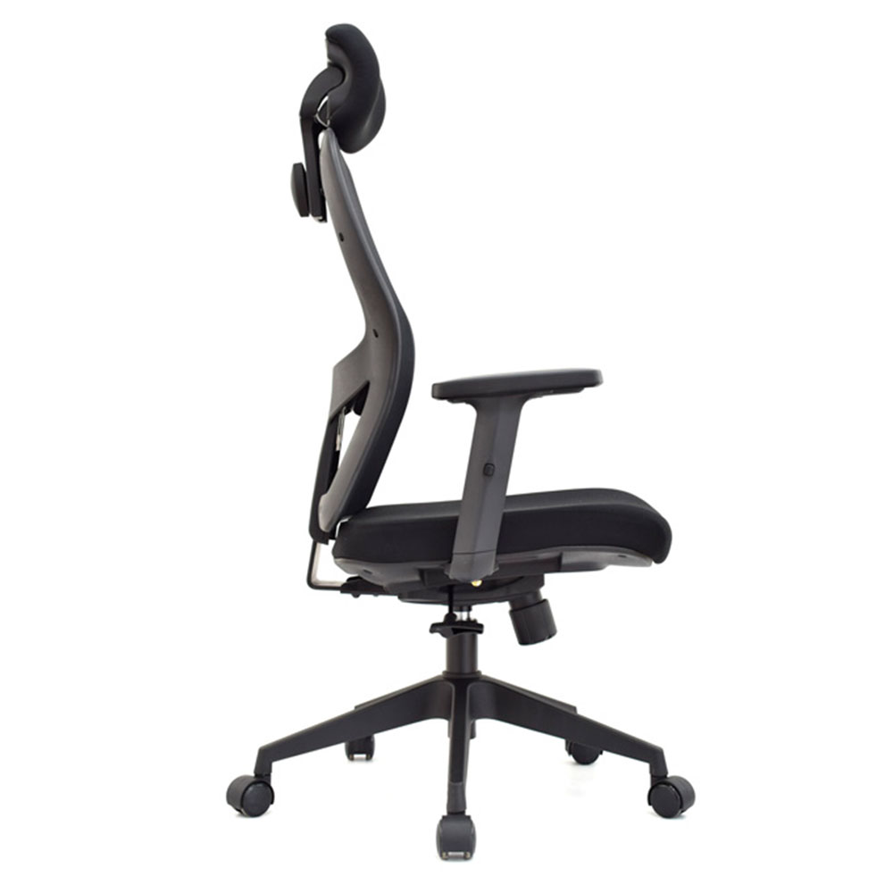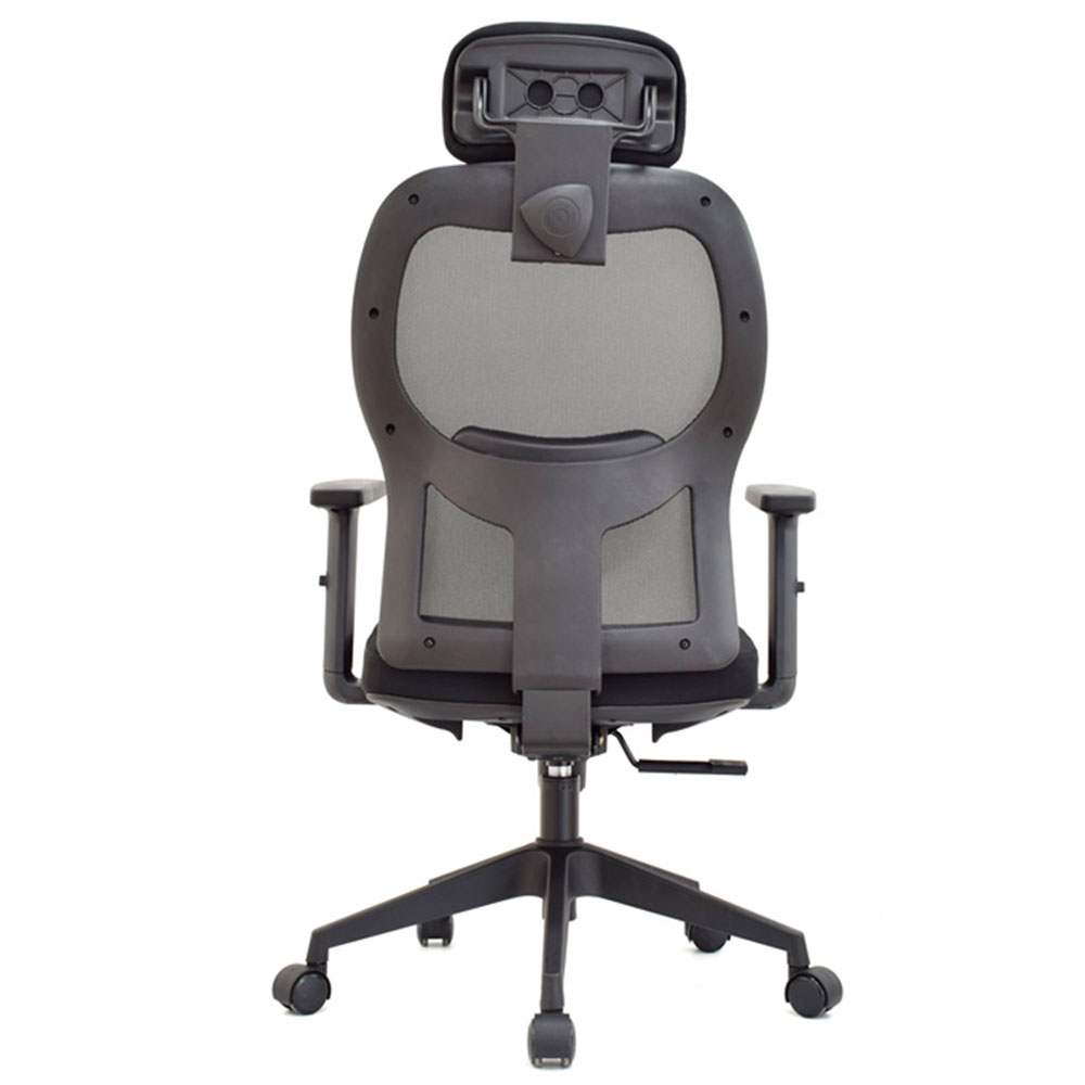 El mecanismo syncro con basculante y 3 bloqueos sincroniza espaldar en malla nylon antitranspirante flexible con asiento tapizado en tela negra y relleno ergonómico. Brazos en polipropileno ajustables en altura o 3D (giro, profundidad), apoyo lumbar graduable en altura y cabecero regulable en inclinación/altura completan esta excelencia postural. Ideal como silla presidencial para entornos que demandan sillas ergonómicas con syncro 3 bloqueos, malla antitranspirable, brazos 3D opcionales, lumbar/cabecero personalizables y bases premium en negro elite.