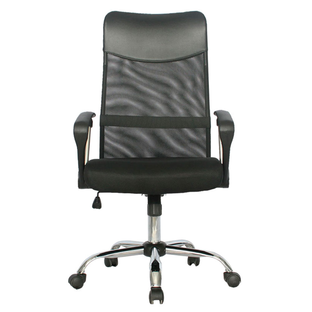 El mecanismo basculante libera movimiento flexible, mientras el espaldar fijo en malla antitranspirante de alta resistencia y asiento en malla promueven ventilación constante y confort prolongado. Brazos fijos en polipropileno con estructura cromada aportan firmeza y elegancia. Ideal como silla presidencial para oficinas que buscan sillas ergonómicas con malla transpirable, basculante simple, base cromada, brazos fijos premium y profesionalismo en negro puro.